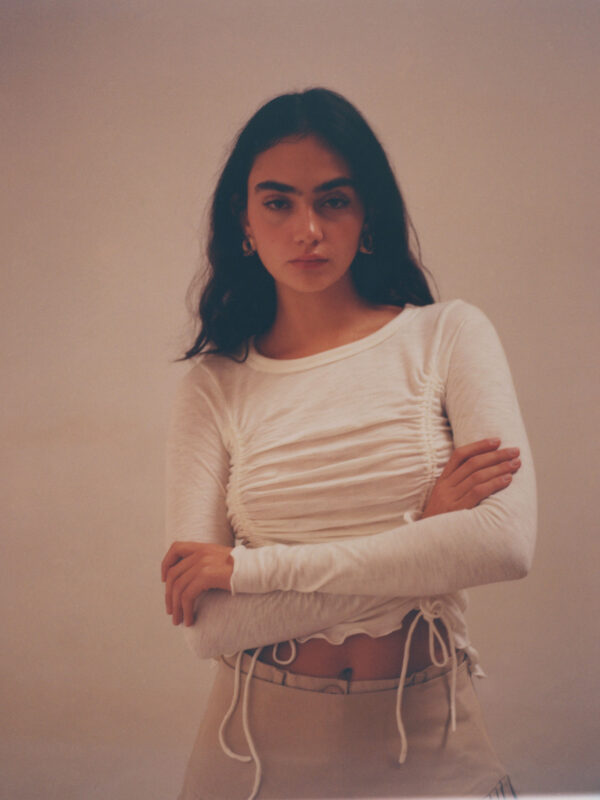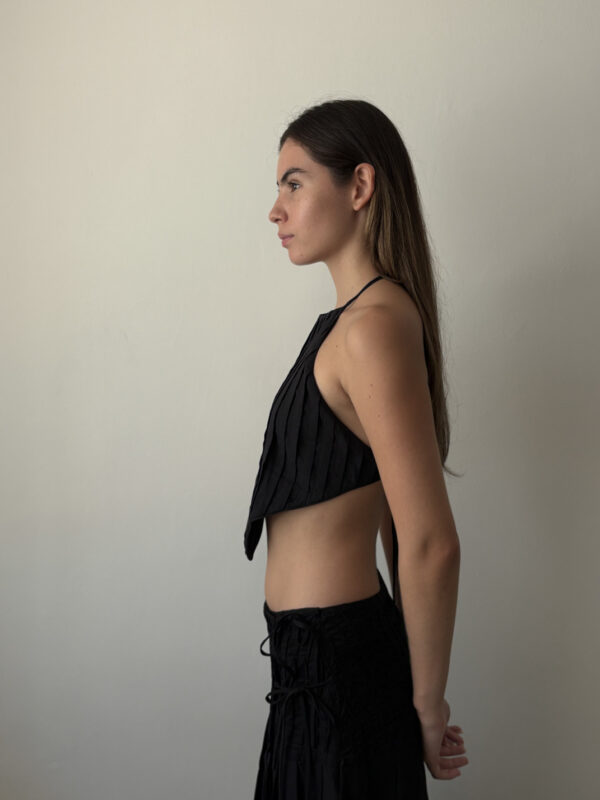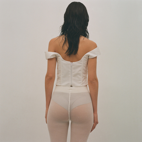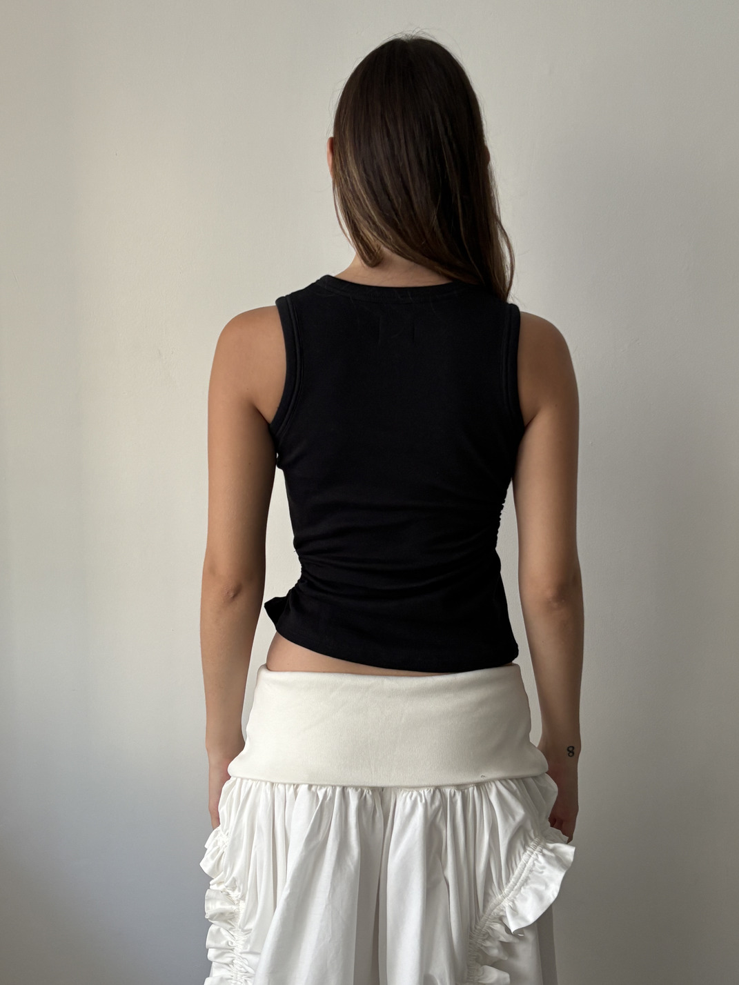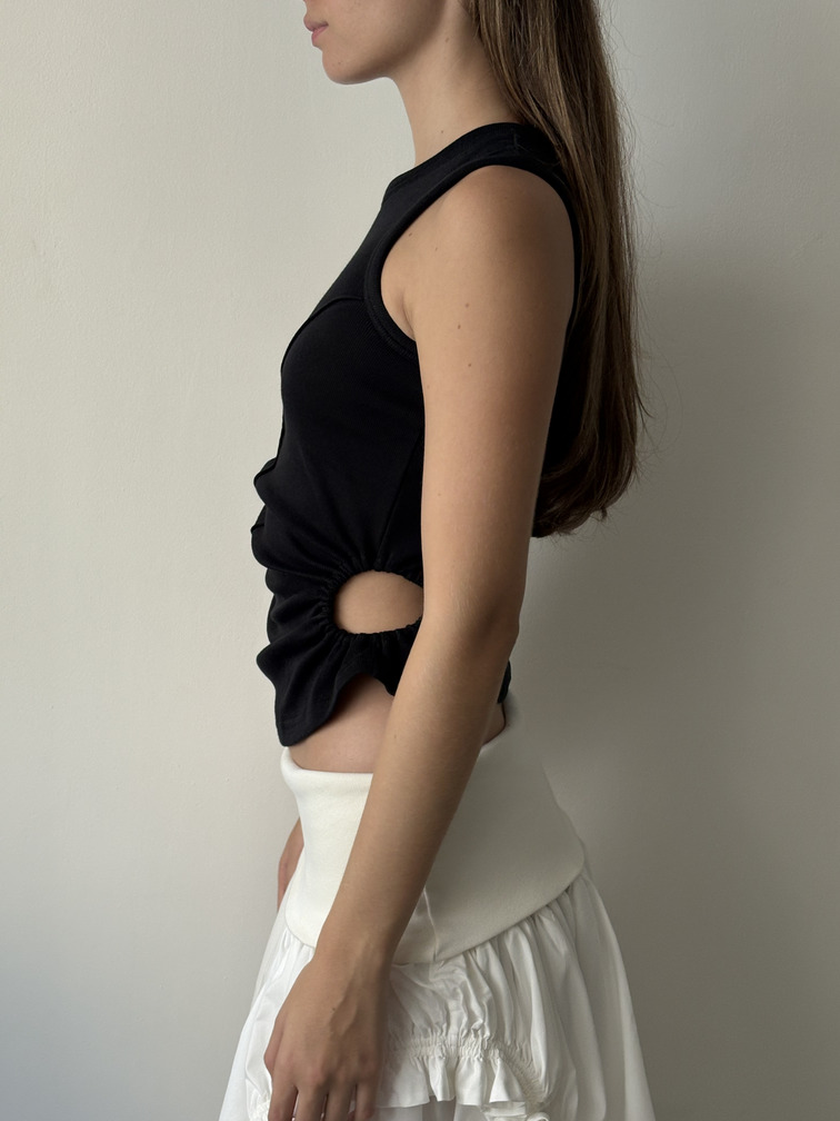 Rib tank top with a fitted silhouette, side cut-outs, and a textured seam pattern.