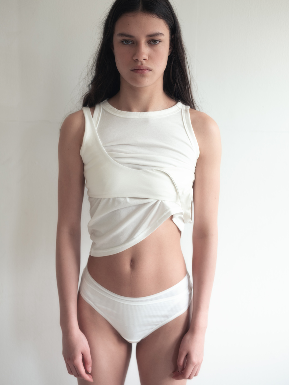 Croptop en algodón con tirantes y silueta ajustada.