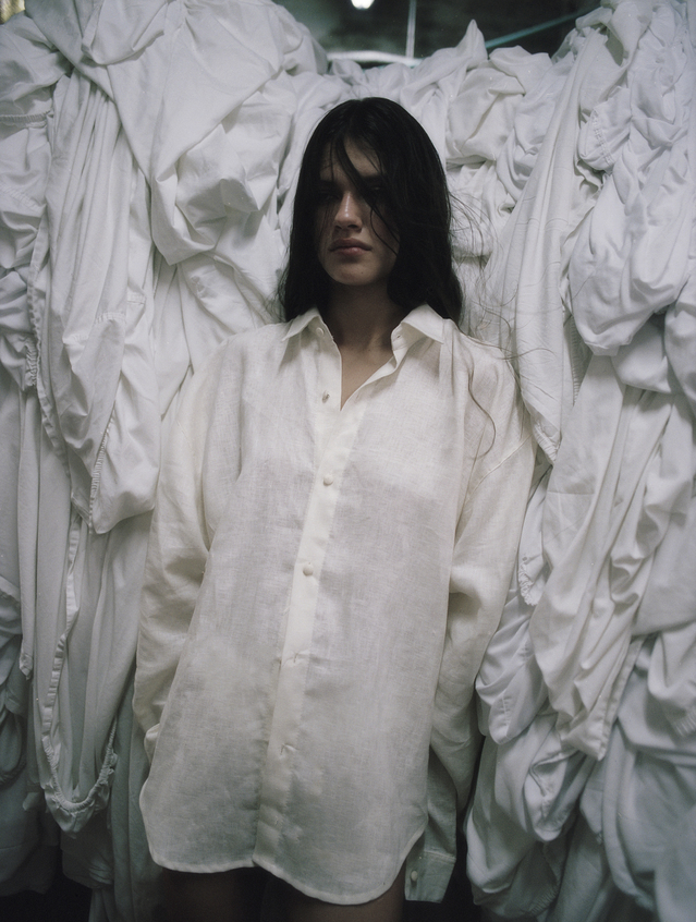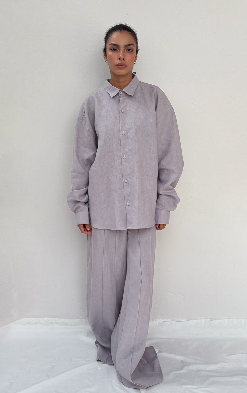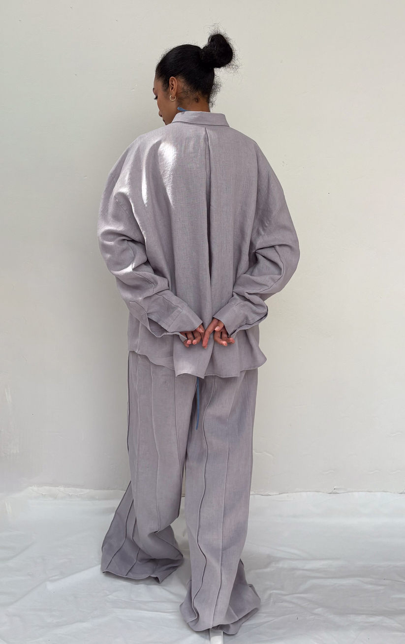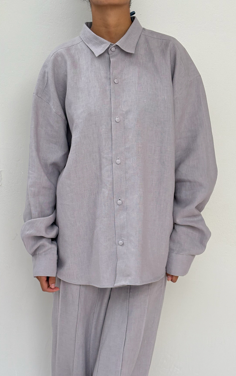 Camisa en lino con silueta amplia, botones forrados y acabado minimalista.
